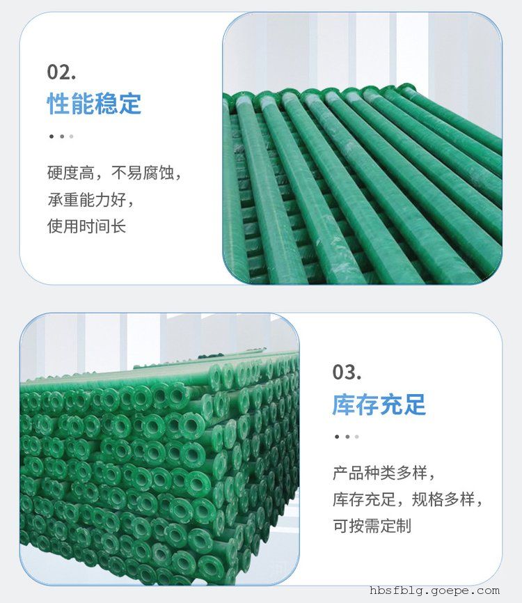 玻璃钢农田灌溉管的设计使用年限以50年为基准,是钢管和混凝土管的2倍。对于腐蚀性较强的介质,其使用远高于钢管等。 -